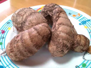 先日山形の里芋の中では最も有名な「甚五右衛門芋」を塩ゆでして食べ「粘りがすごいな〜」と思ったんですが、寒河江の子姫芋を昨日貰ったので、同じく塩ゆでして食べてみました。